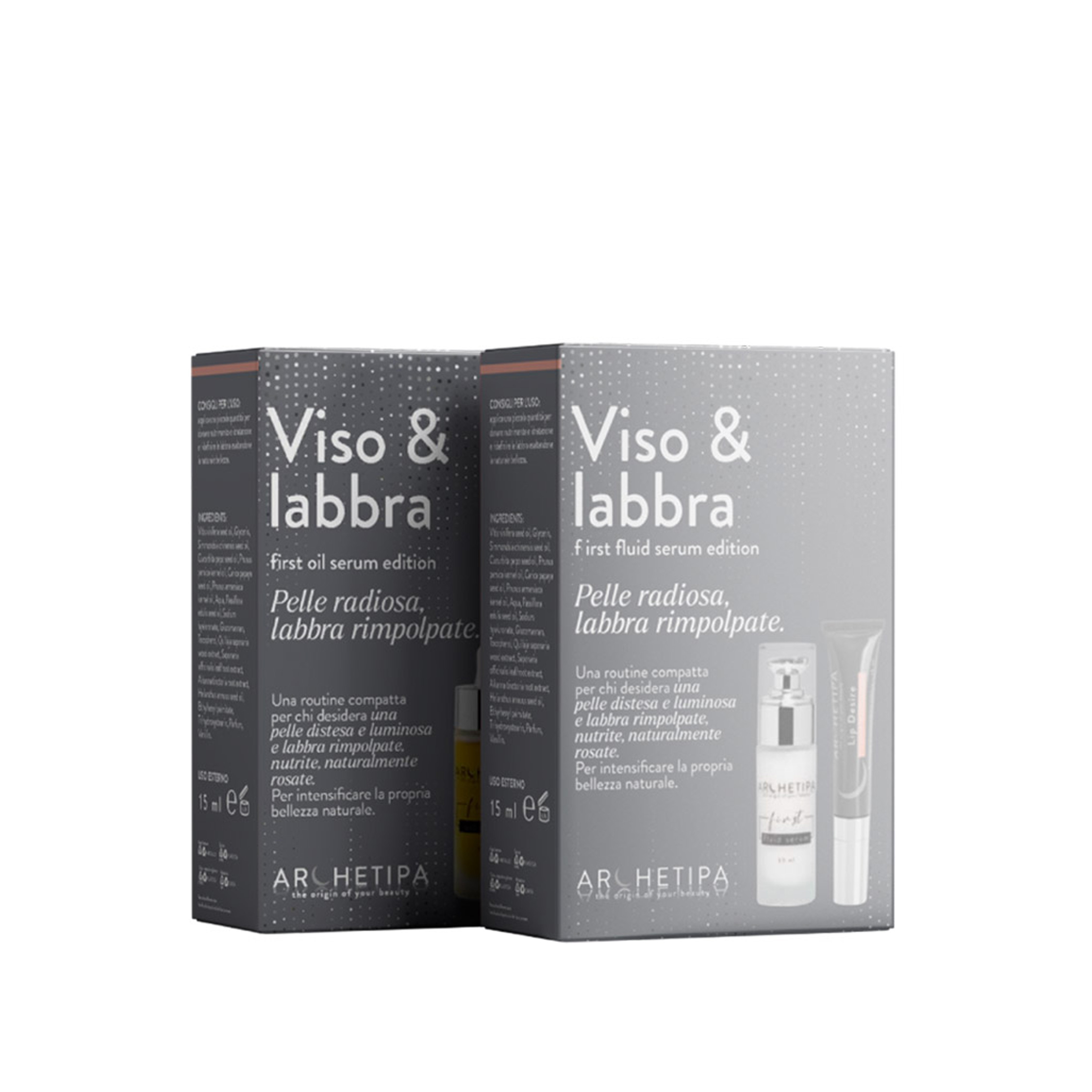 Vitis vinifera seed oil (Vinaccioli), Glycerin, Simmondsia chinensis seed oil (Jojoba), Cucurbita pepo seed oil (Semi di Zucca), Prunus persica kernel oil (Pesca), Carica papaya seed oil, Prunus armeniaca kernel oil (Albicocca), Aqua, Passiflora edulis seed oil, Sodium hyaluronate, Glucomannan, Tocopherol (Vitamina E), Quillaja saponaria wood extract, Saponaria officinalis leaf/root extract, Alkanna tinctoria root extract, Helianthus annuus seed oil (Girasole), Ethylhexyl palmitate, Trihydroxystearin, Parfum, Vanillin
