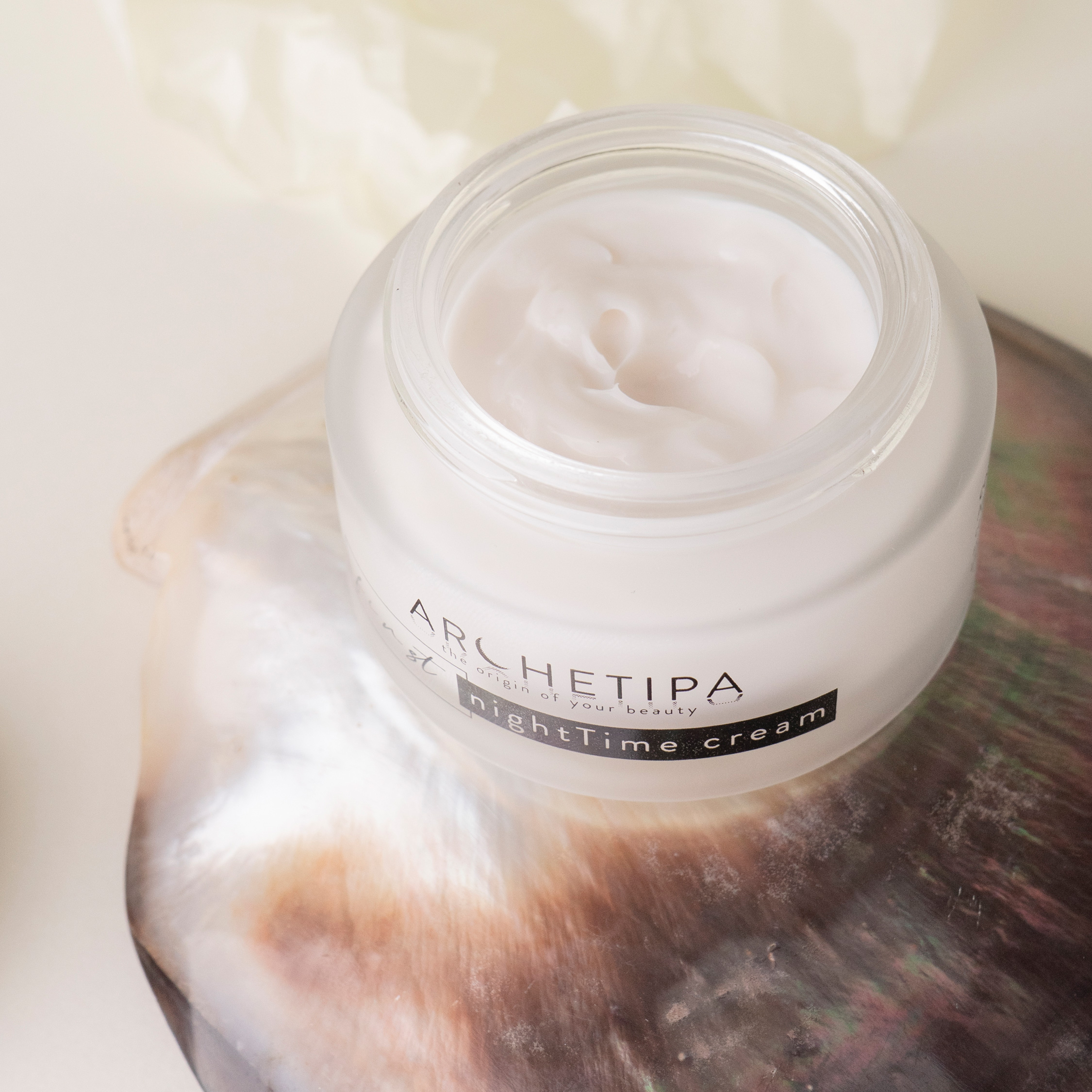 Archetipa first nightTime cream è un’emulsione notte dalla texture avvolgente, formulata per supportare il naturale processo di rigenerazione cutanea durante le ore di riposo.