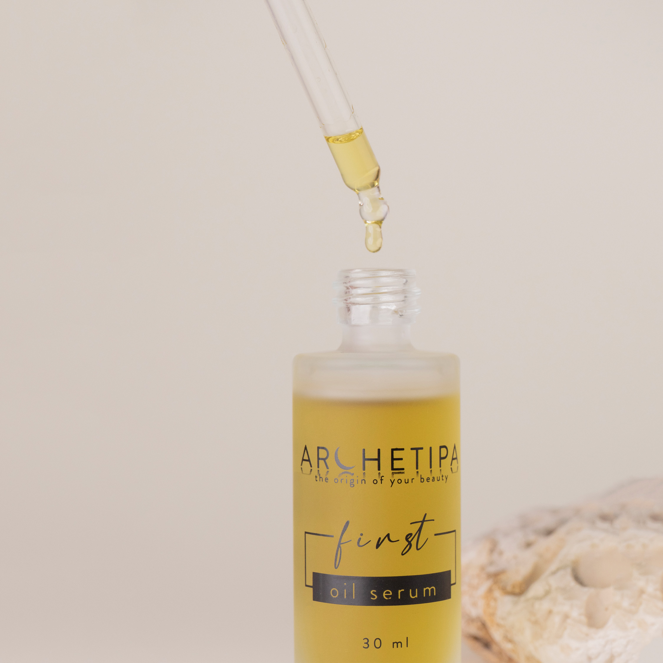 Archetipa first oil serum è un siero viso in formula oleosa ricco di attivi nutrienti e ristrutturanti di origine naturale, formulato per contrastare i segni del tempo con un effetto lifting, rimpolpante e tonificante.