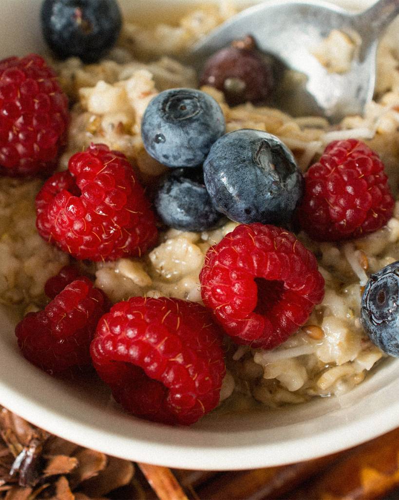 1. A COLAZIONE: porridge ai frutti rossi, noci, semi e tè verde