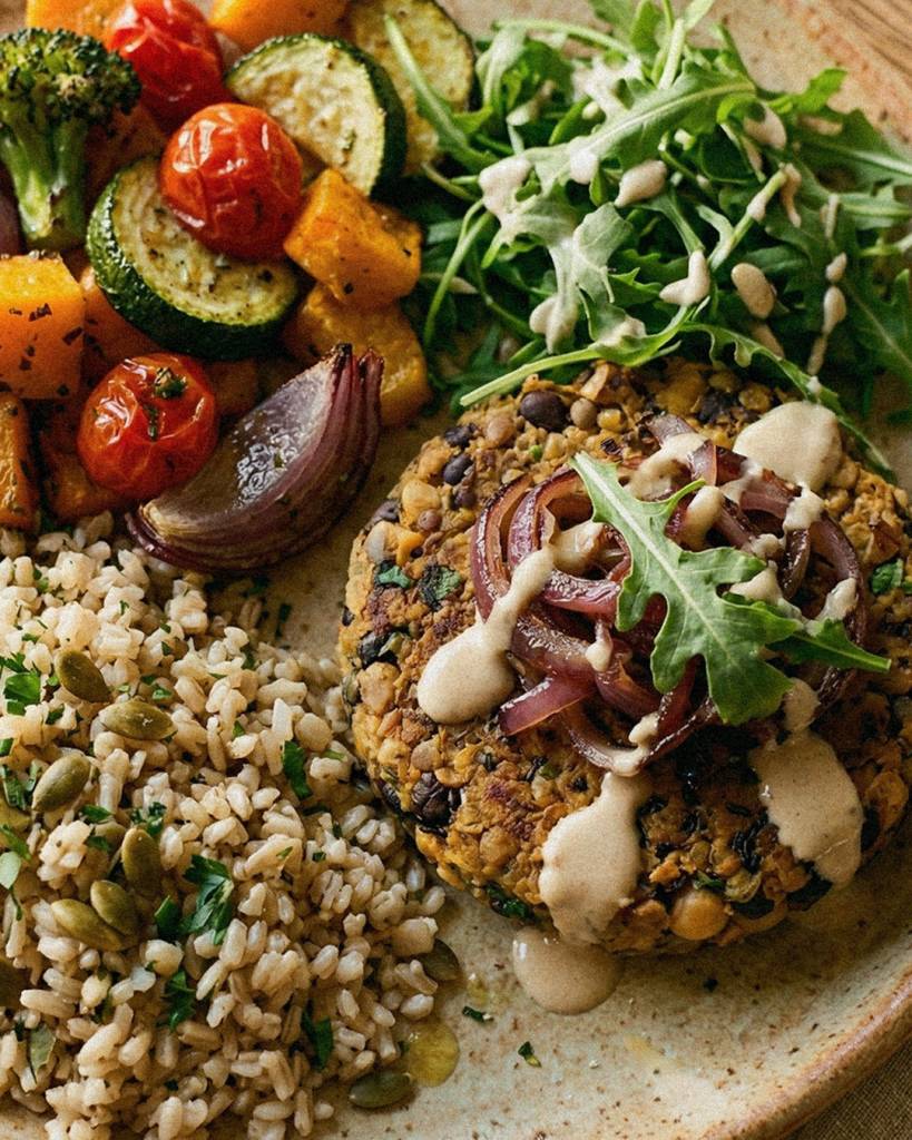 3. A CENA: burger di legumi con riso integrale e verdure